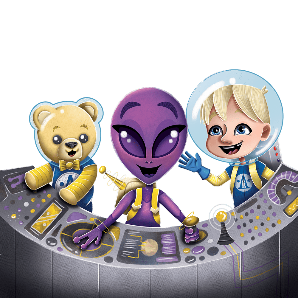 When Skyler and his Astrobear best friend Apollo blast off to the Moon, the last thing they expect is to meet a real live alien! With a magic backpack and clues that show up on the soles of his feet, Pete the alien quickly brings Skyler and Apollo on the space adventure of a lifetime.