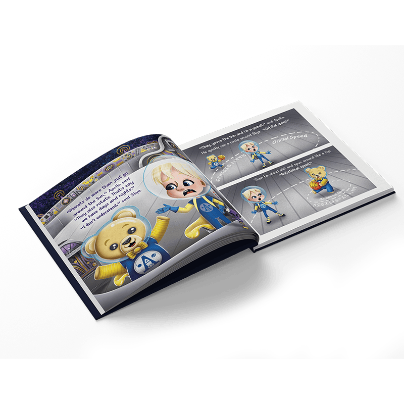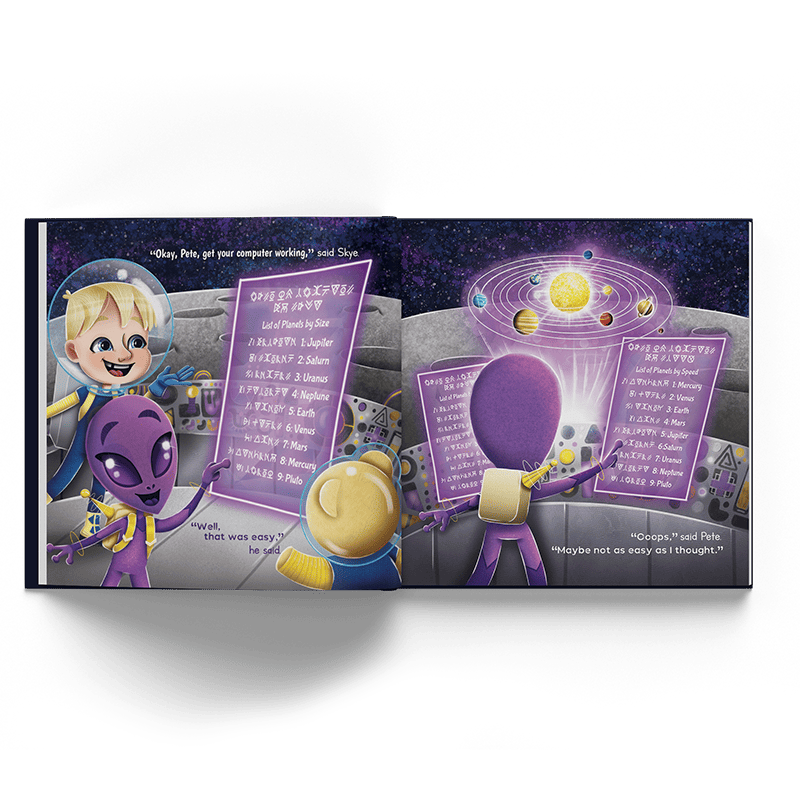 When Skyler and his Astrobear best friend Apollo blast off to the Moon, the last thing they expect is to meet a real live alien! With a magic backpack and clues that show up on the soles of his feet, Pete the alien quickly brings Skyler and Apollo on the space adventure of a lifetime.